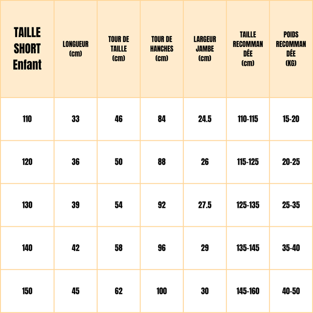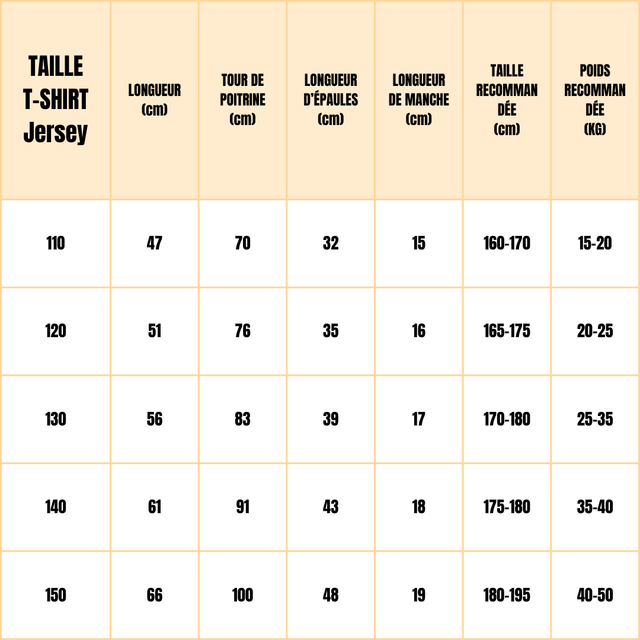 Tailles enfants disponibles : 110, 120, 130, 140 et 150. Merci d’indiquer la taille choisie dans la section « Message » à droite de la photo du produit lors de la commande.